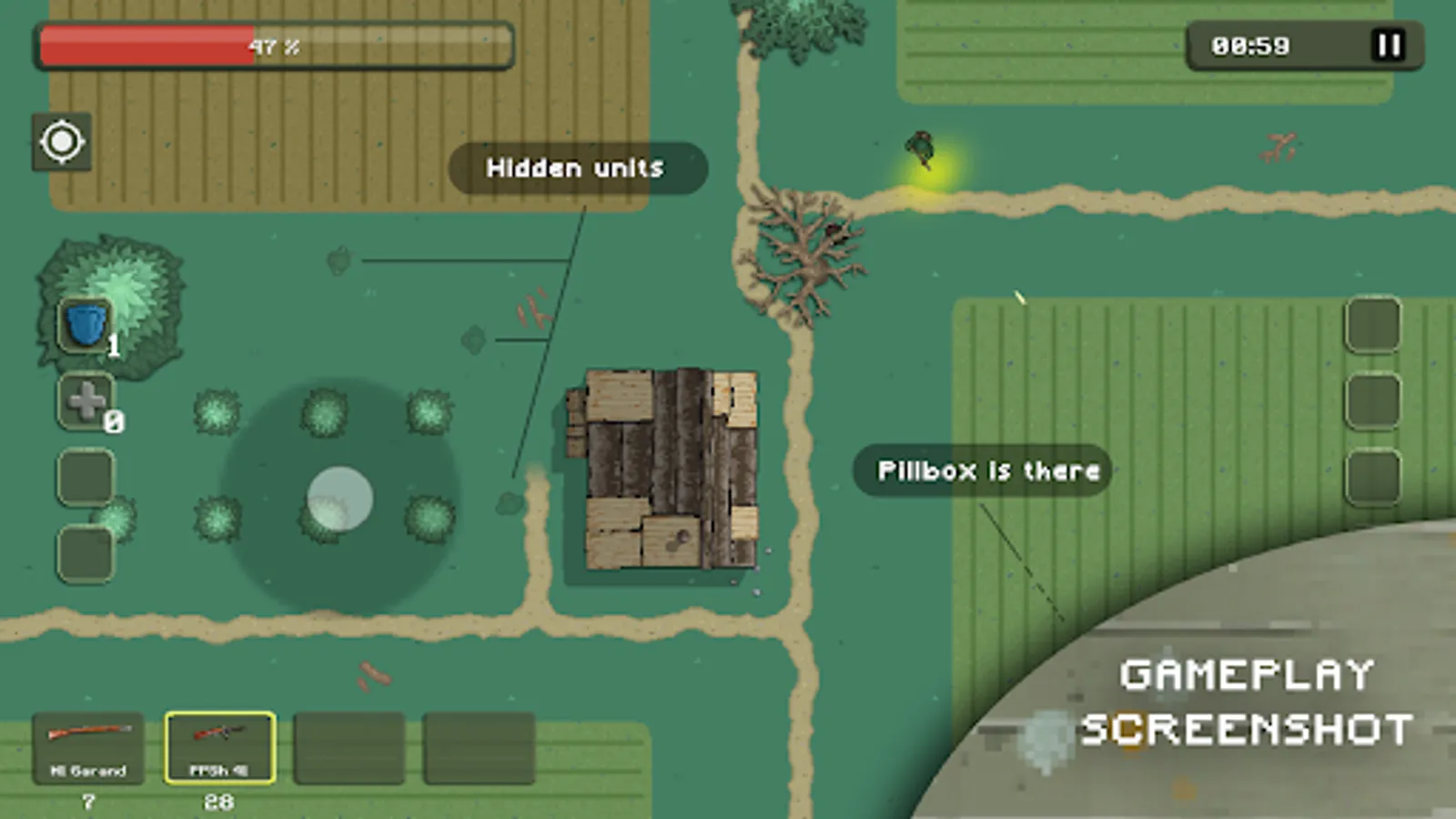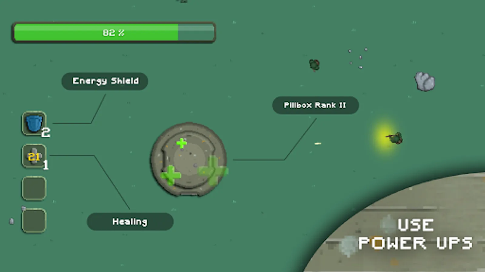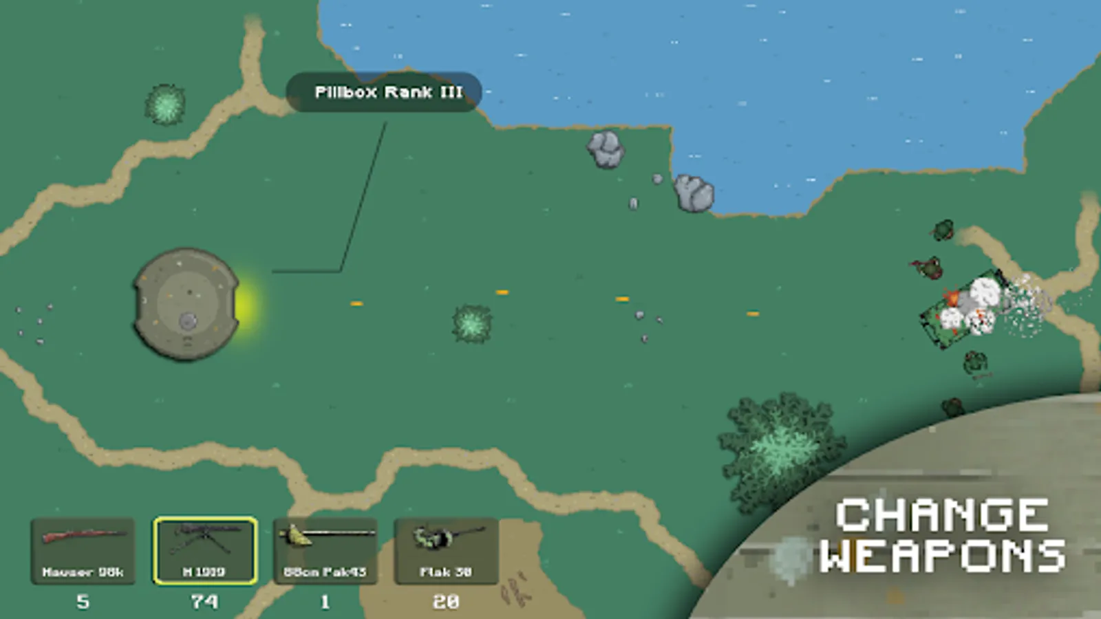 You are sitting in a pillbox and protecting it from advancing enemies. With each new level, the enemy becomes stronger. Upgrade your bunker and your weapons to win!