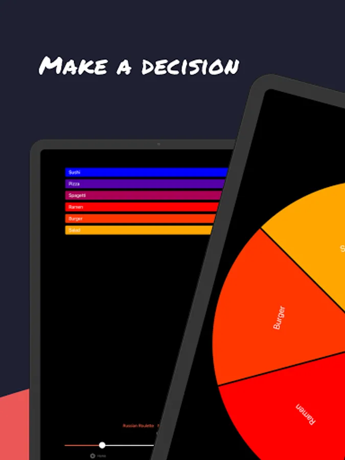The app offers an individually configurable lucky wheel that feels completely natural when spinning it. Whether board games, group games or other creative ideas - there are no limits. With this app there will never be problems in terms of decision making again. Additionally there are preconfigured modes and more features are planned.