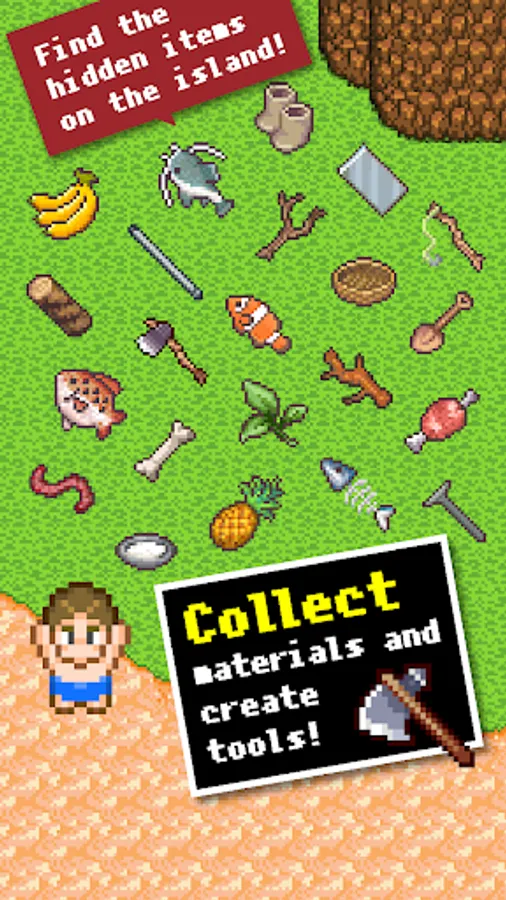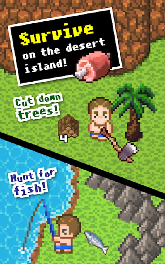 Your goal is to escape from the desert island by solving problems with retro style pixel-art like old console games.