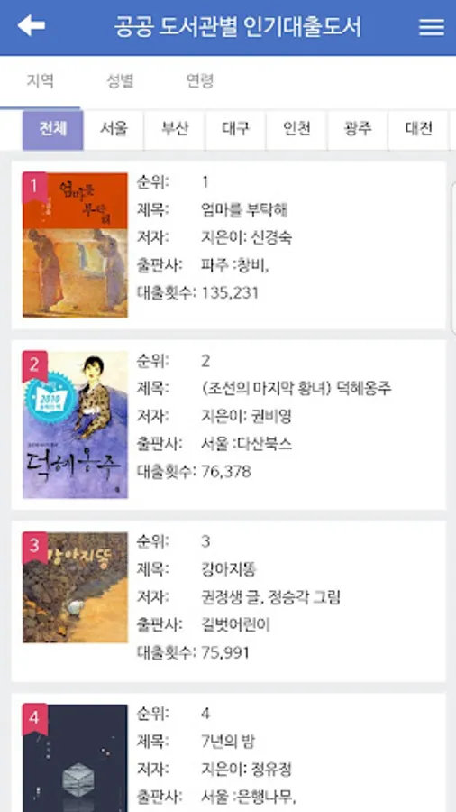 - National regional public library, gender, age popular loan check book