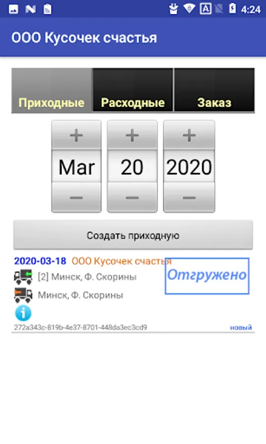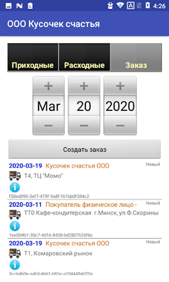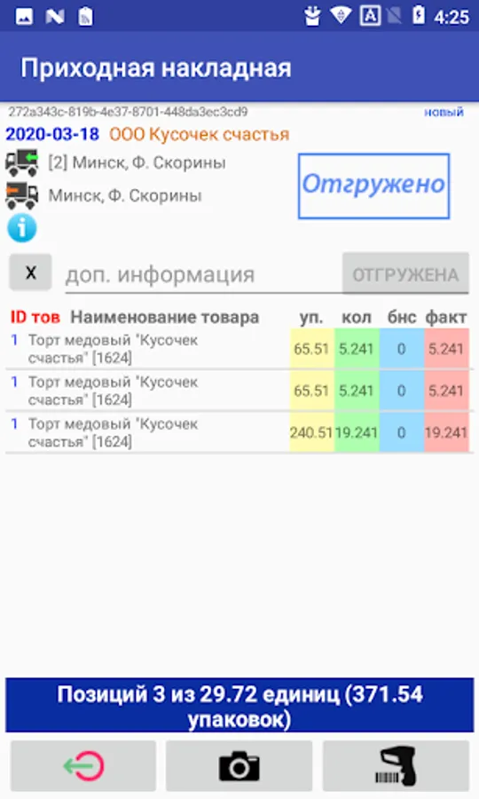 Application for mobile data collection terminals NEWLAND MT65 working as part of the MEGASTOCK software package of the enterprise “Slice of happiness” LLC