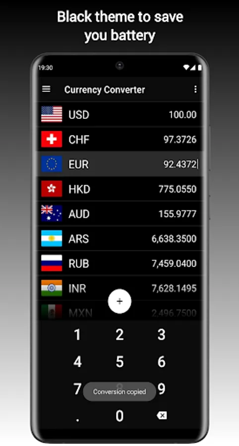 Uses live exchange rates updated daily and saved locally to your device for offline use requiring no internet connection. All free to use!
