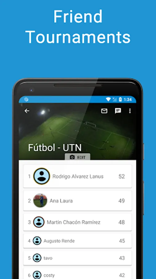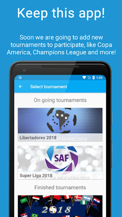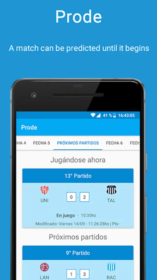 A prode in which you can play with your friends predicting the results of the matches played in this new editions of the Liga Profesional, Copa America, etc