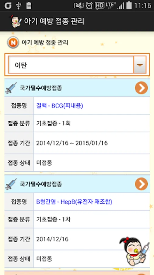 Registration information may be informed if a baby by calculating the inoculation date on basic vaccinations and other countries bangjeopjong example, enter the actual doctor's appointment one day and supports the notification date for those vaccinated.