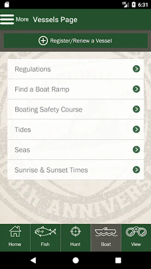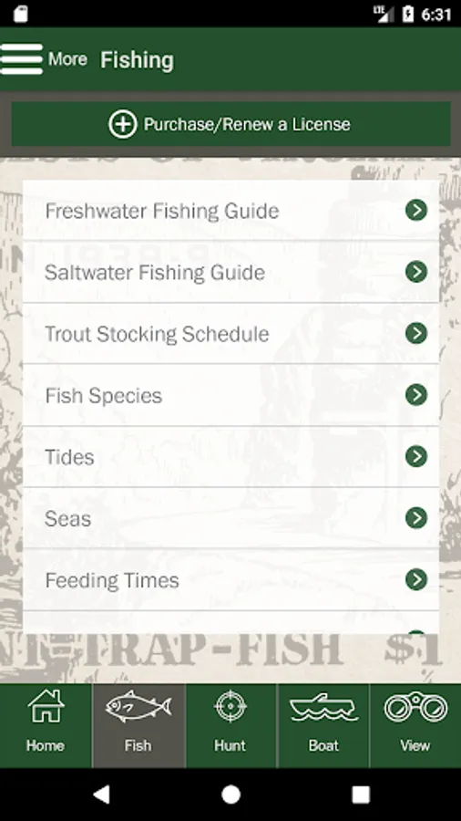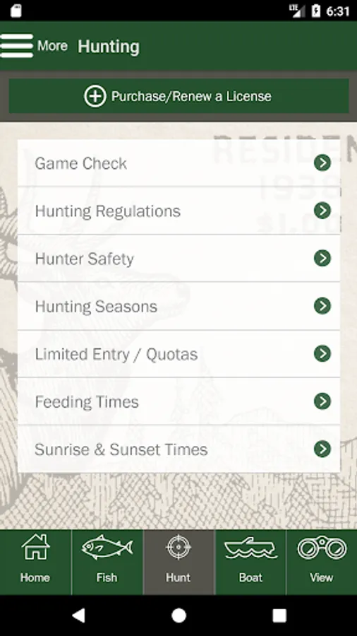 - Access to hunting and fishing regulations, season and bag limit information, and state record fish