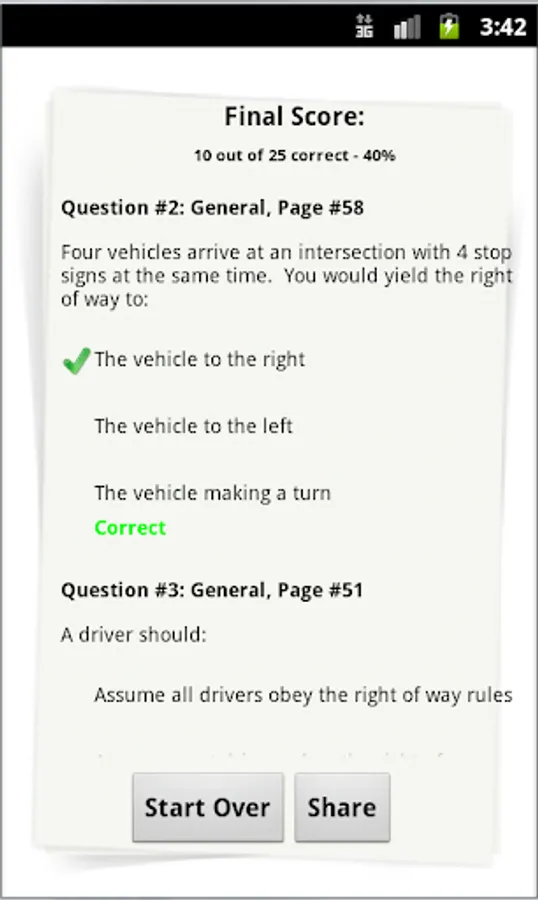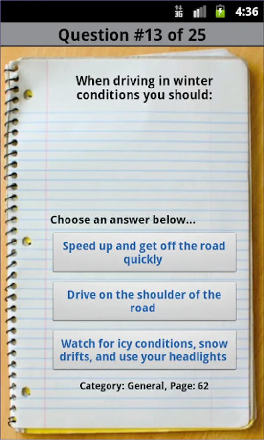 This Android app will help new drivers prepare for the knowledge portion of an Indiana driver’s license test. It is also helpful for current drivers who want to be up-to-date on basic driver safety. When you are done, you can see how many you answered correctly, and what the correct answers are. (Practice questions do not appear on the actual test.)