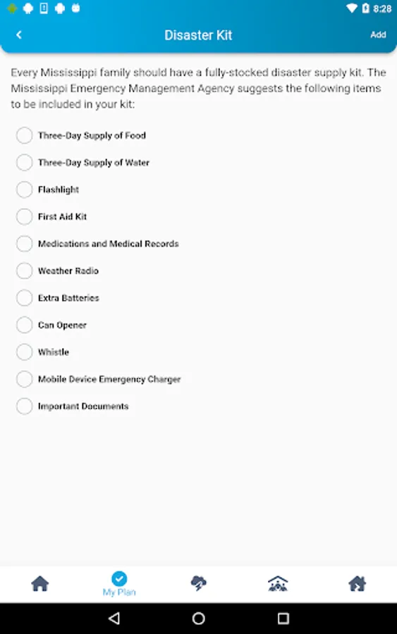 Be prepared for a disaster in Mississippi. The MEMA app allows users to take control of their disaster plans to keep them safe. Personalize weather alerts, checklists, and plans to be ready for any natural or man-made event. The app also allows users to find resources needed to recover.