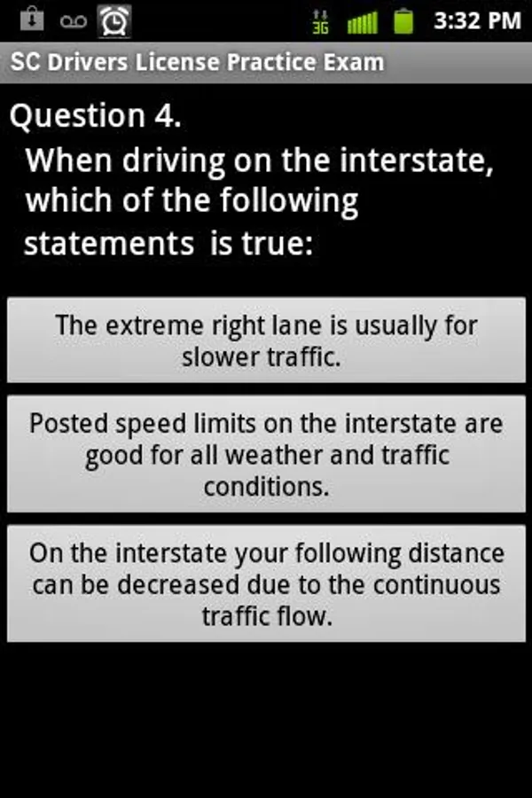 Test your knowledge of the rules of the road for South Carolina. This app has been created by the SC Department of Motor Vehicles to assist you with becoming a safe driver. The app is designed to provide the necessary foundation to safely meet the responsibilities of a new driver. Use it to prepare for the written test required to obtain a driver license. It is also a great tool for those new to the state, parents helping their teen learn to drive as well as drivers who want a refresher on the rules of the road.