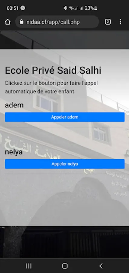 si vous avez des problème pour récupérer vos enfants de l'école, avec l'application Nidaa vous pouvez appeler votre garçon ou file de l'école automatiquement pour sortir de l'école.