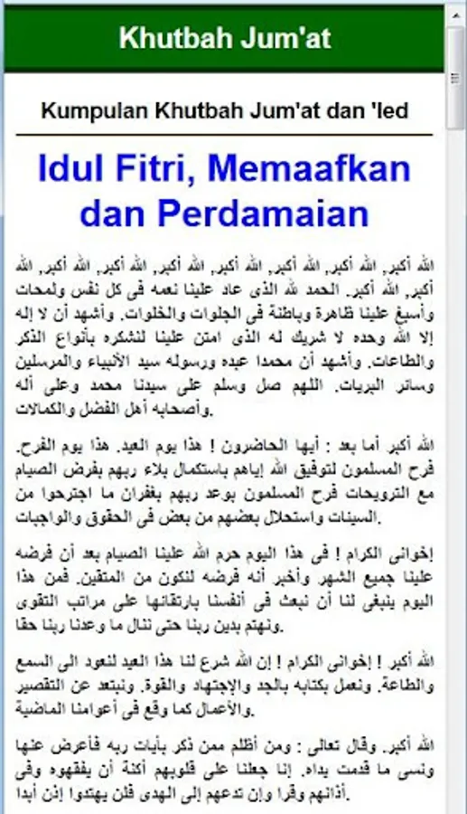 Aplikasi ini juga dilengkapi dengan Khutbah Hari Raya.
