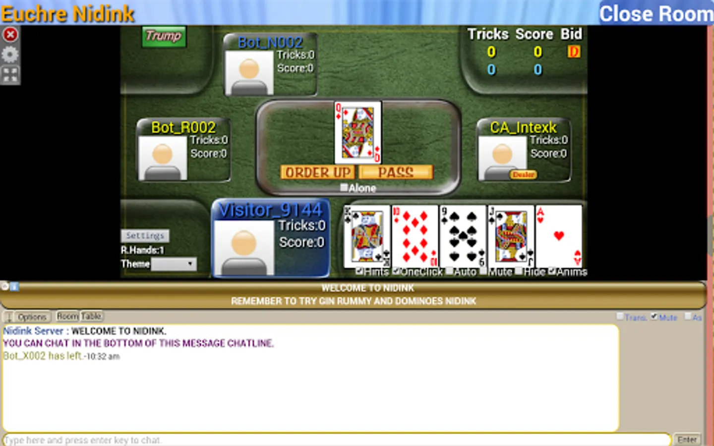 Play Euchre in a mutiplayer online environment with your friends or new people.