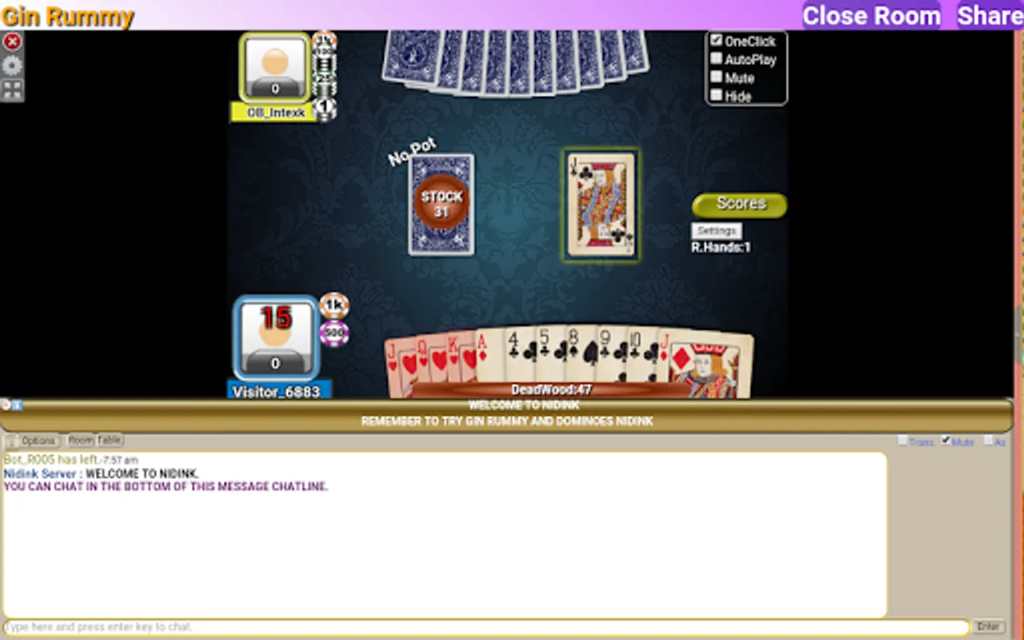 Play Gin Rummy in a multiplayer online environment with your friends or new people.