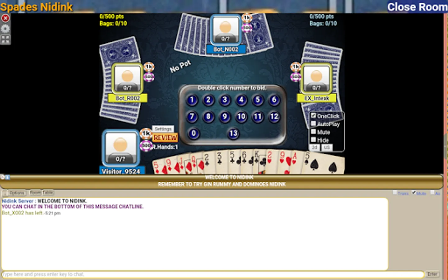 Play Spades in a mutiplayer online environment with your friends or new people.