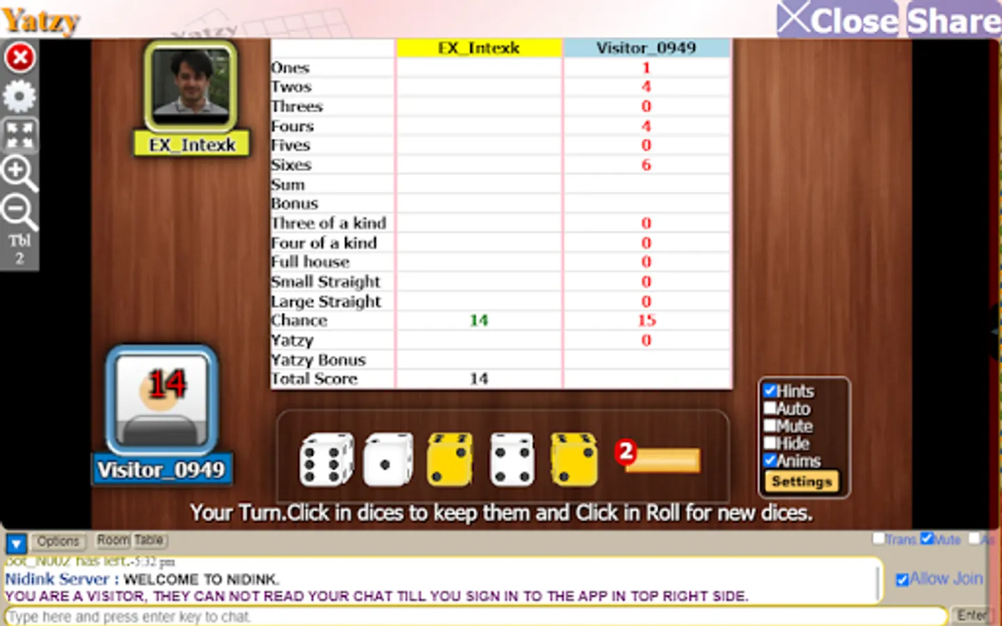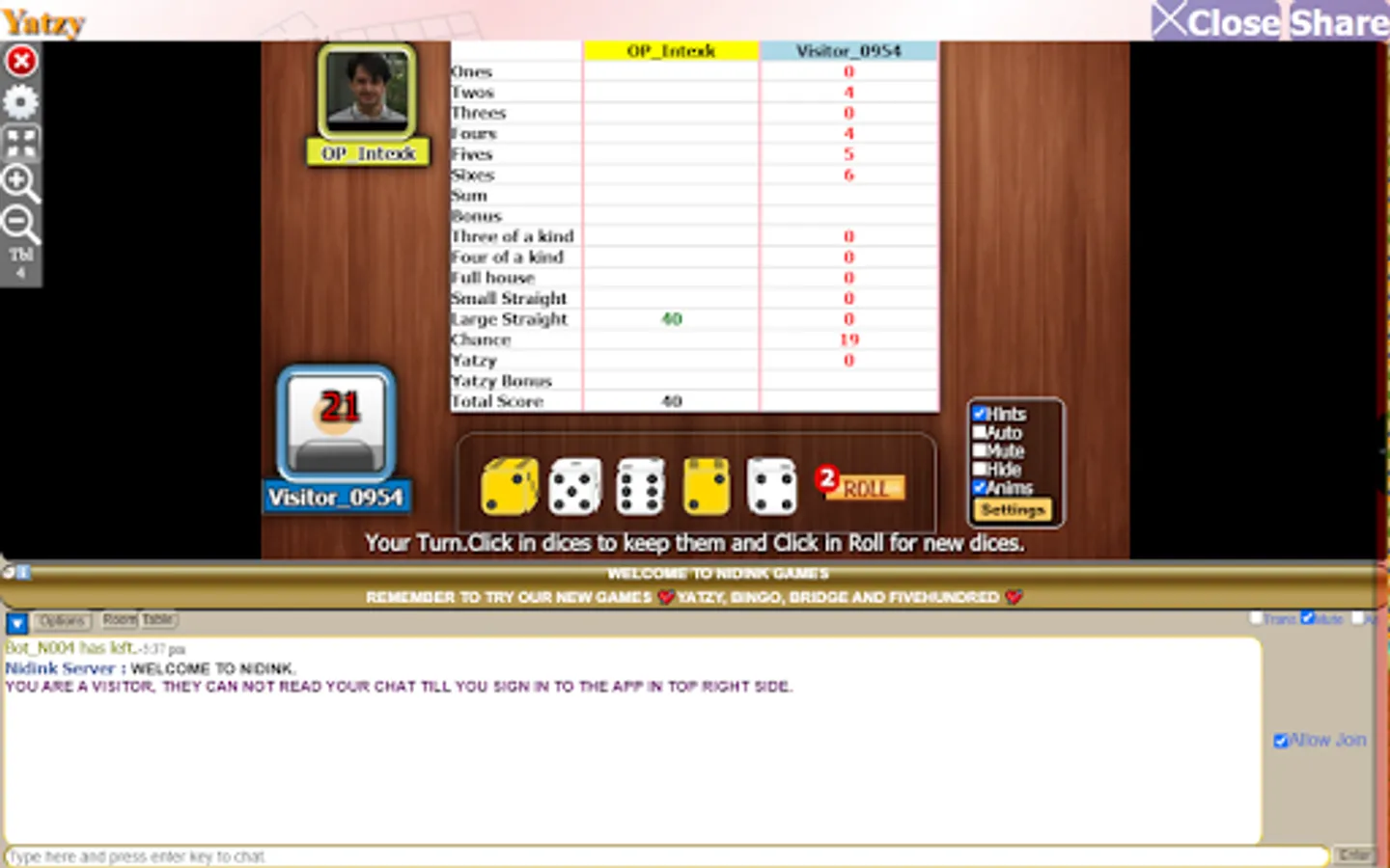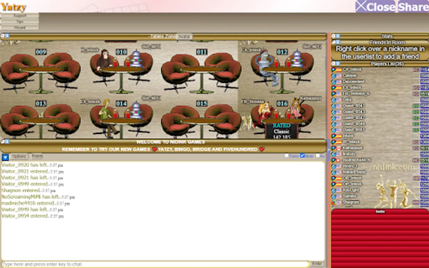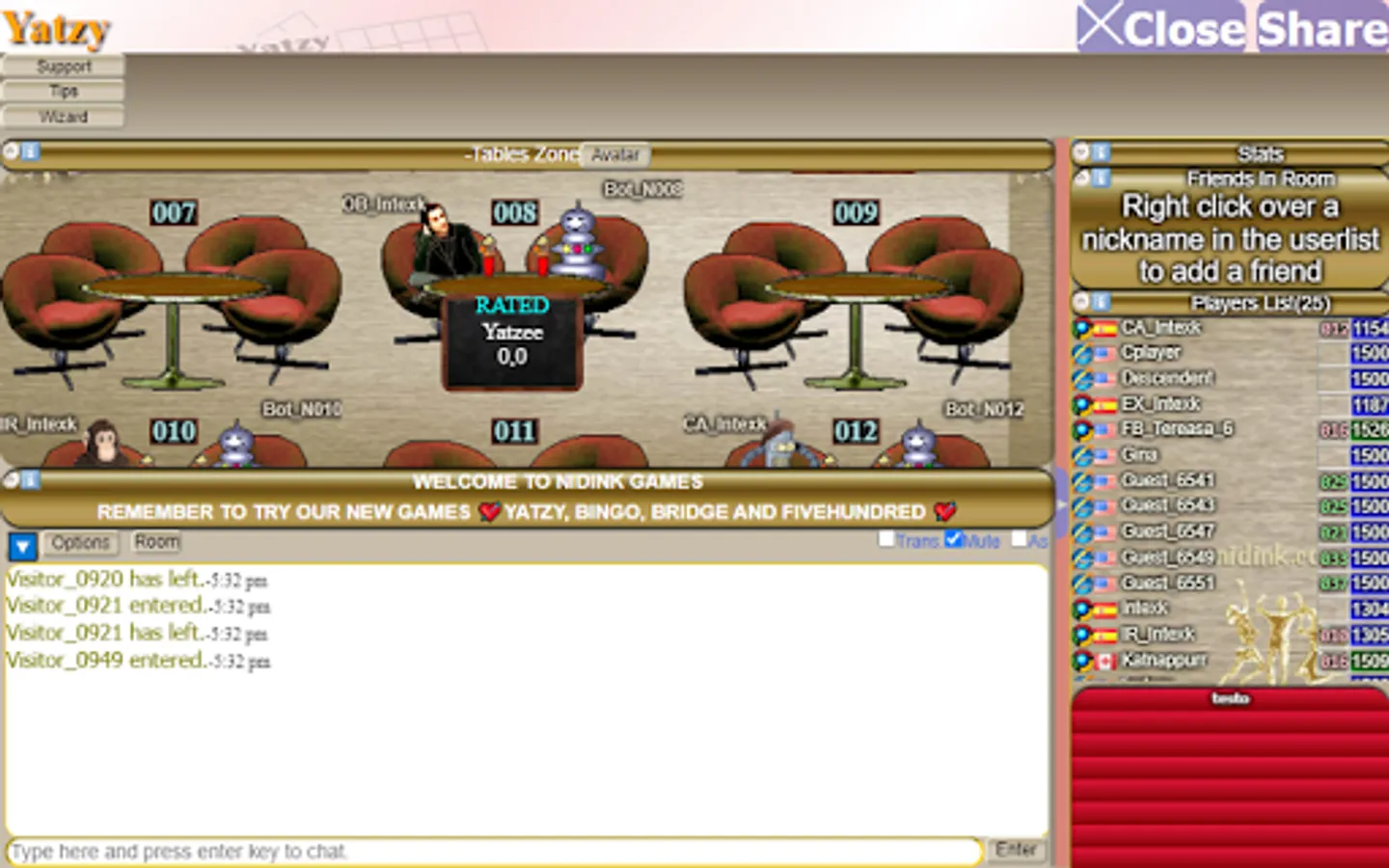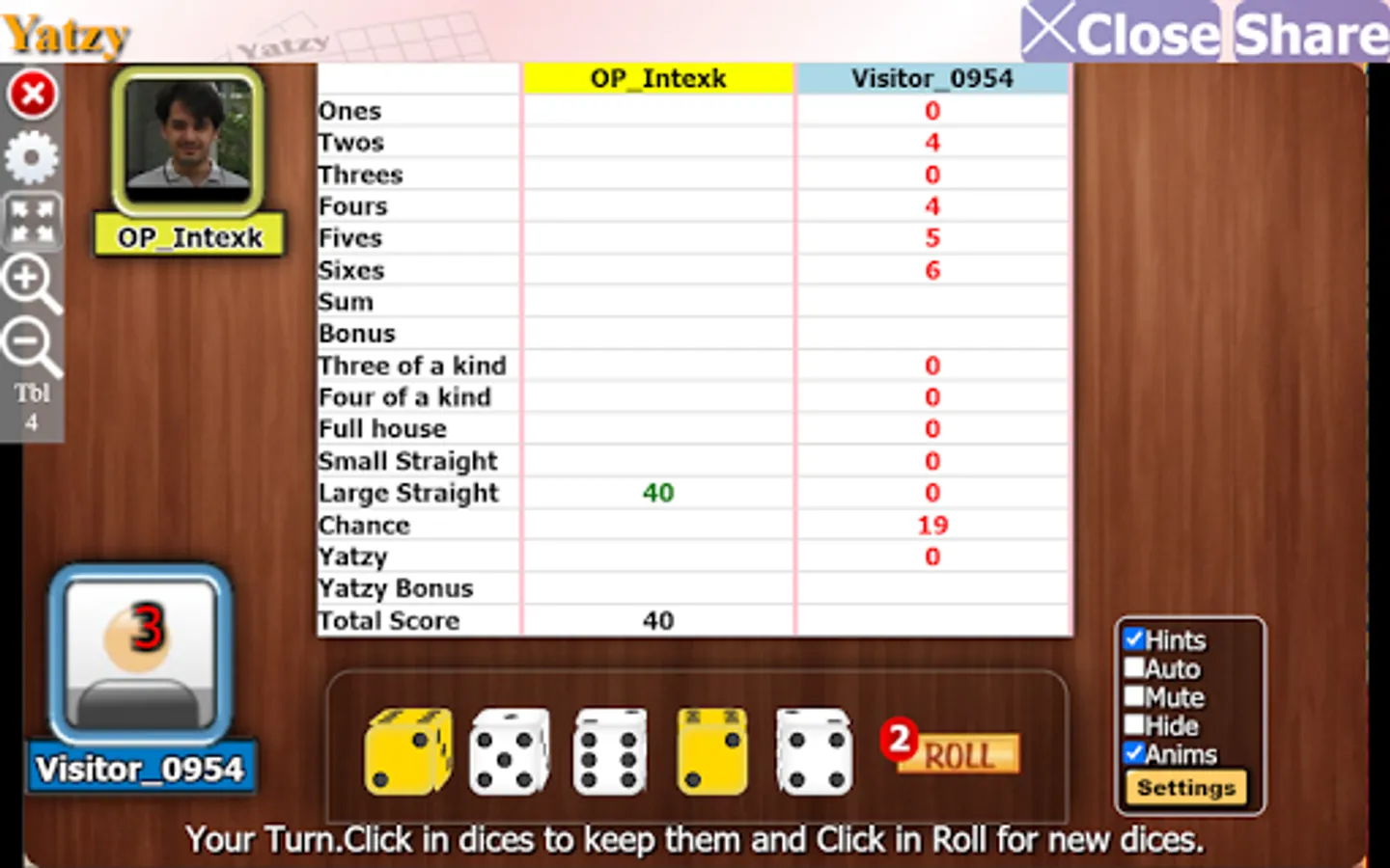 Play Yatzy (similar to yatzee) in a multiplayer online environment with your friends or new people.
