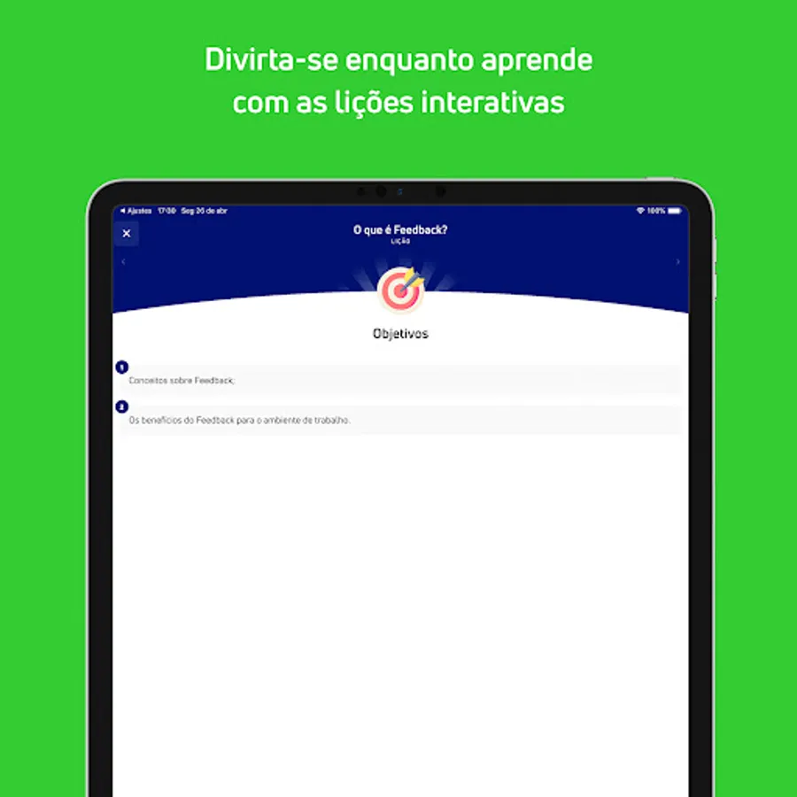 The contents are made available in a light and creative way, through microlessons. At each stage, participants are challenged with questions that add points to the overall rating of users.