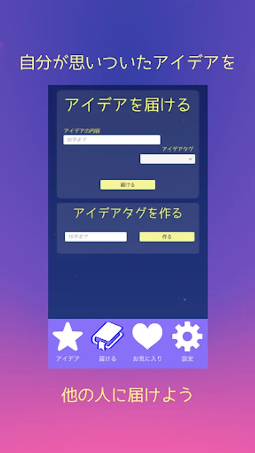 This app connects people who are stuck with ideas and those who have come up with a unique idea but can't realize it and want someone to realize it.