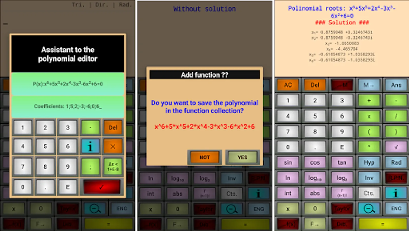The need to have a scientific calculator for our own purposes has made us go designing one that we now share. It also incorporates resolution of Taylor series and roots of polynomials.