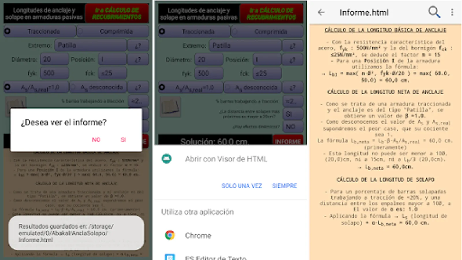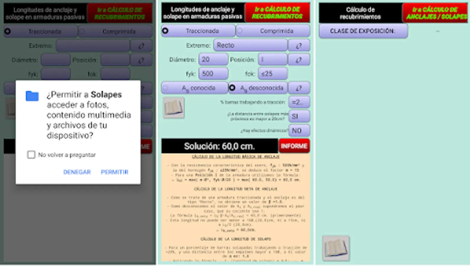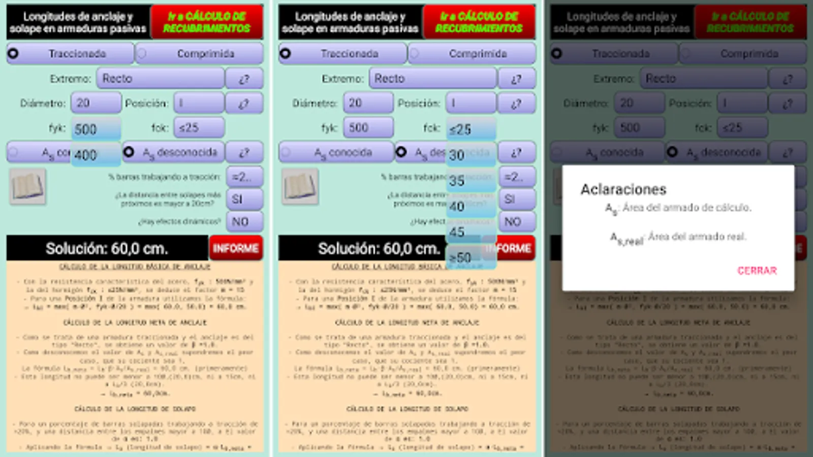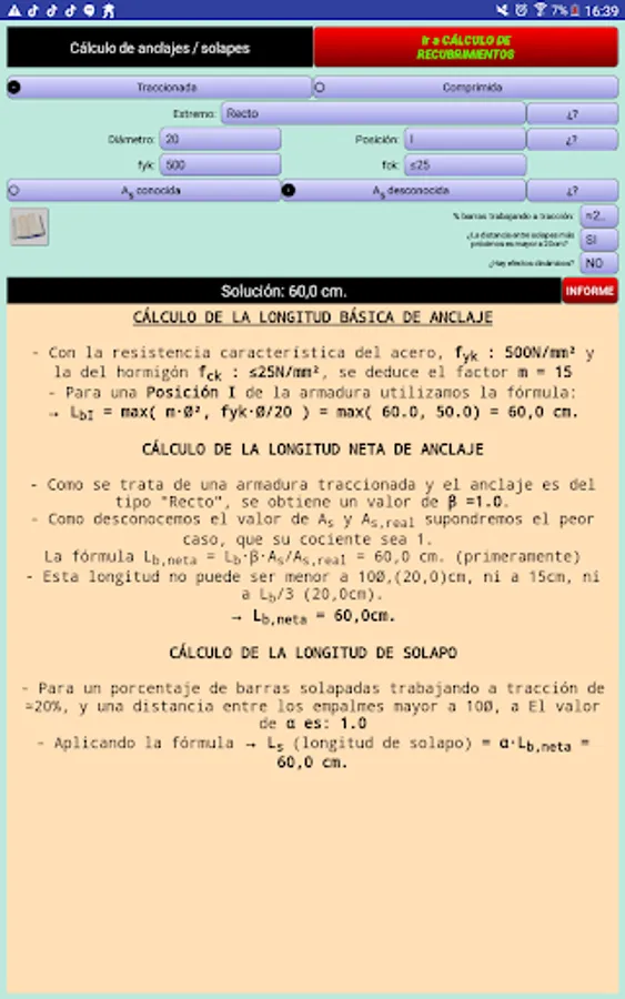 This application makes the simple calculation of the anchorage and / or overlap length of our passive reinforcement as well as its minimum coatings. The idea is to have an application that helps us on site or at a stage of sizing and / or drawing of the ferralla in plans.