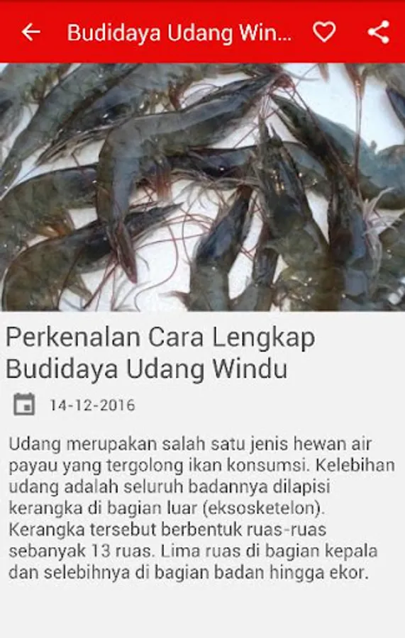 Shrimp is one of the animals are classified as brackish water fish consumption. Excess shrimp is the entire body is coated skeleton on the outside (eksosketelon). The framework is shaped segments as many as 13 segments. Five roads in the head and rest on the body to the tail. The shrimp on the market an average of crawfish. Only a small proportion of type freshwater shrimp.