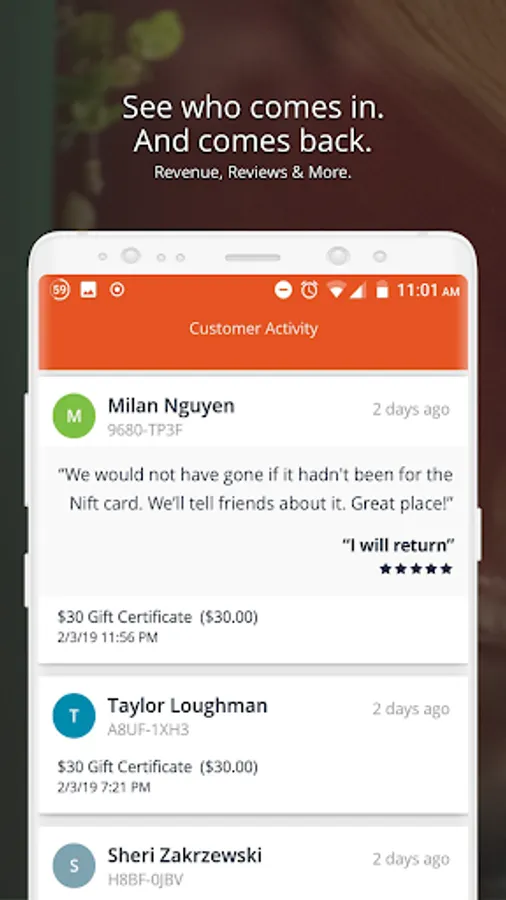 Fill your business with great customers. Track it all in the palm of your hand with the Nift Manager app--designed specifically for business owners.