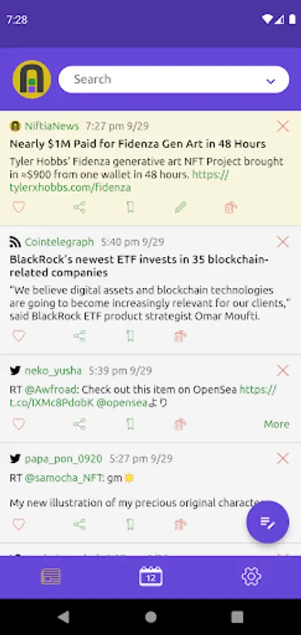 Niftia is a new type of real-time NFT news and events app, designed for novices and professional collectors, investors, artists and enthusiasts. In addition to the Niftia News Desk (NND), we aggregate actionable NFT news, events and analytics from social media sources including twitter, blogs, RSS feeds and other sources. Our platform utilizes human analysts combined with machine learning to find, categorize and analyze relevant NFT news. You can use this firehose of actionable information to find the best NFT deals and alpha for NFT investments.