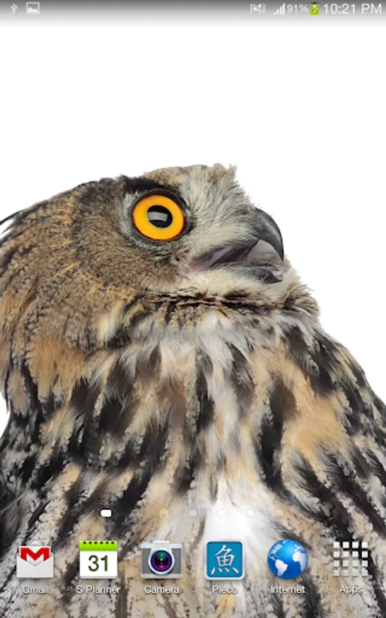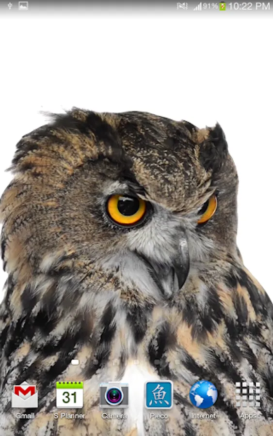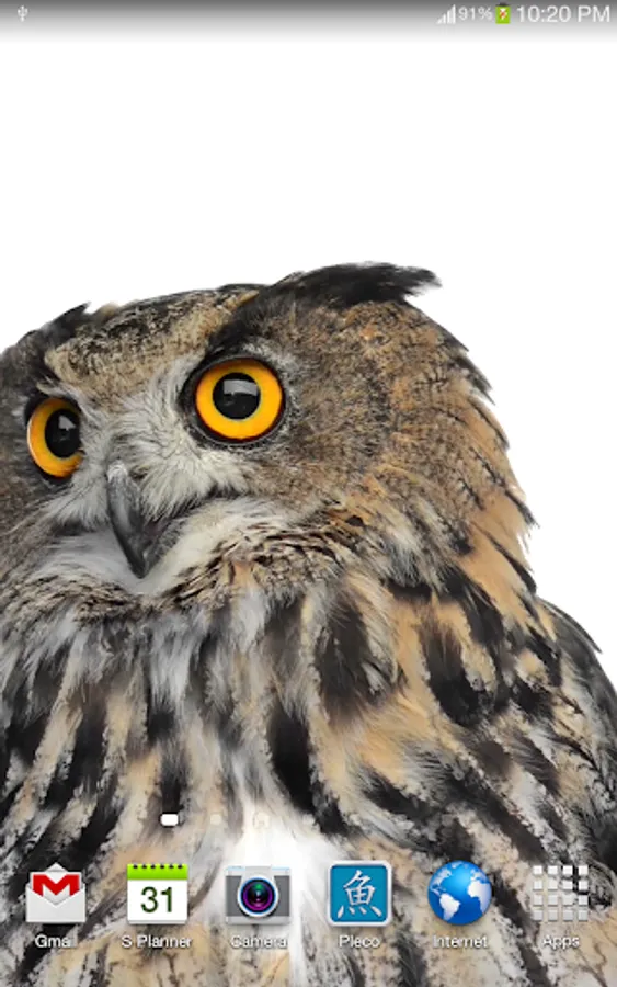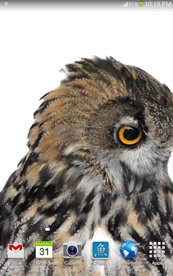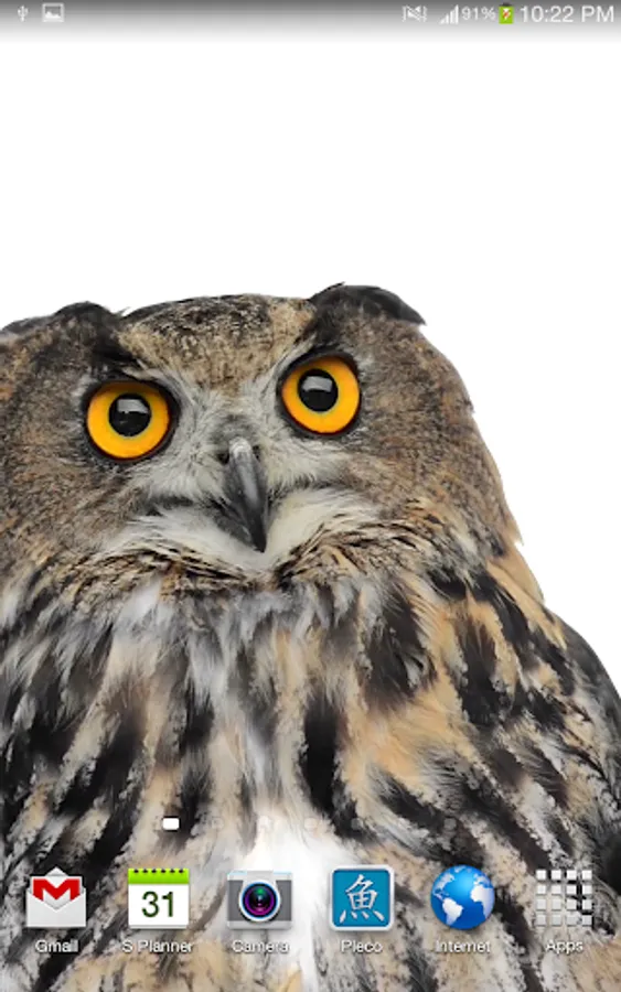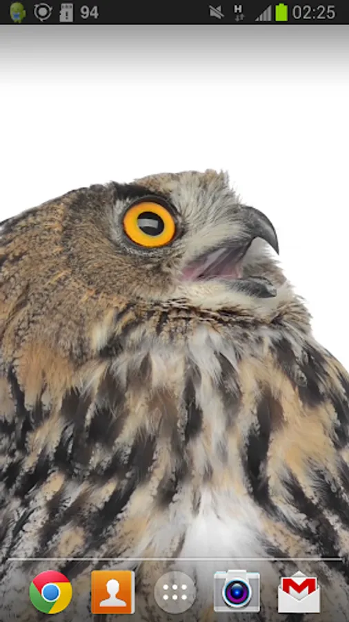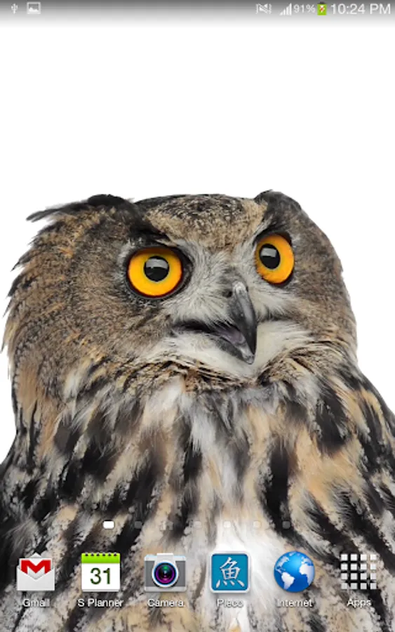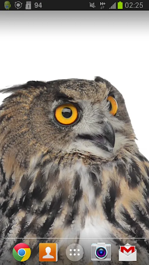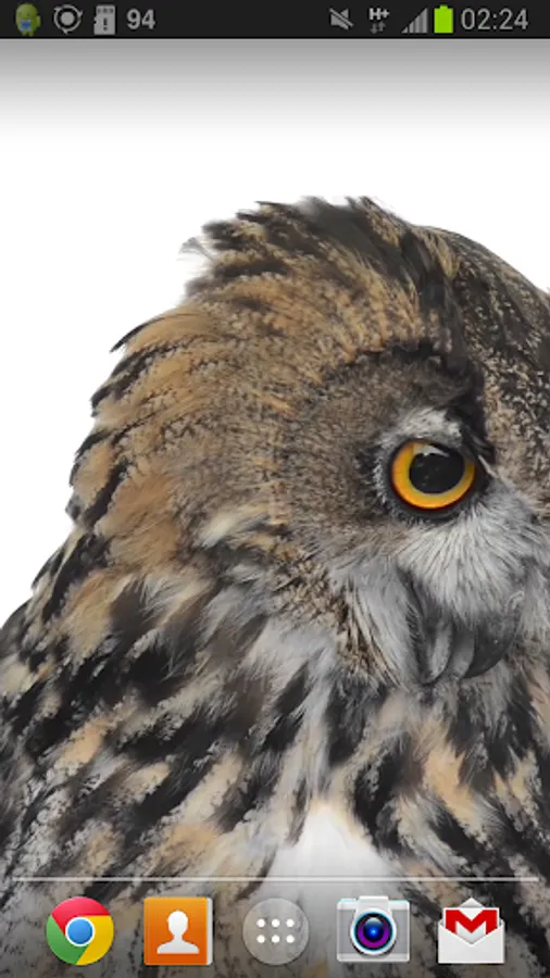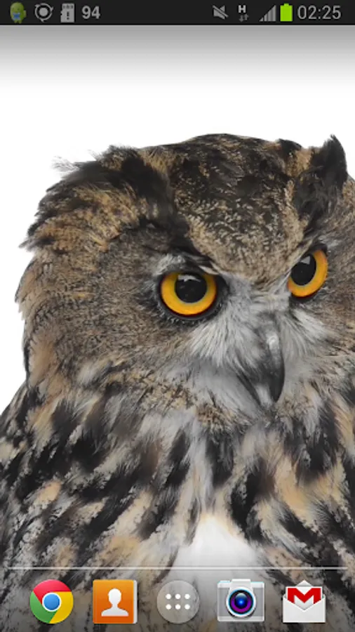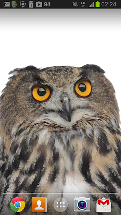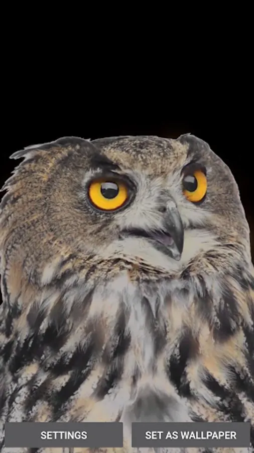 Owl Live Wallpaper features a manic owl who blinks, opens its beak, gasps and whips its head around - all the while staring at you with intense owl eyes, as owls are wont to do. Install this animated owl wallpaper and it will be like having a pocket owl with you at all times. Be entertained by the theatrical yet cute owl living on your home screen as it constantly makes dramatic movements while gazing with owl curiosity.