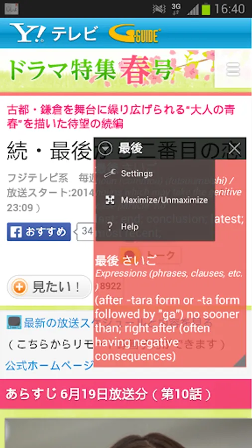 • Use it on demand - Turn Popup Japanese Dictionary on when you want it to listen for copied words, and easily turn it off from the notification bar when you wish to disable the dictionary. Minimize the popup window when you want to conserve screen estate; it will be automatically restored the next time you copy a word.