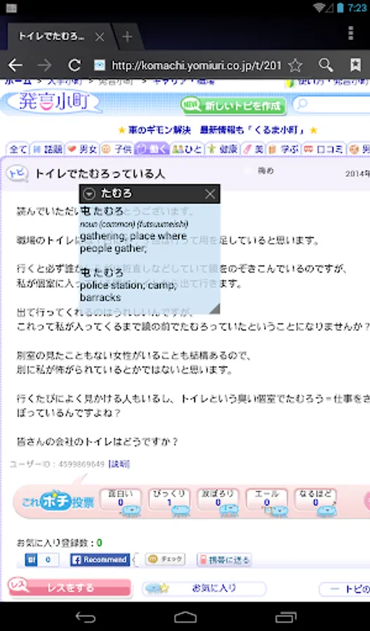 • Browse Japanese websites and forums on your favorite browser, be it Chrome, Firefox or the default Android browser, and look up word meanings without leaving your browser screen