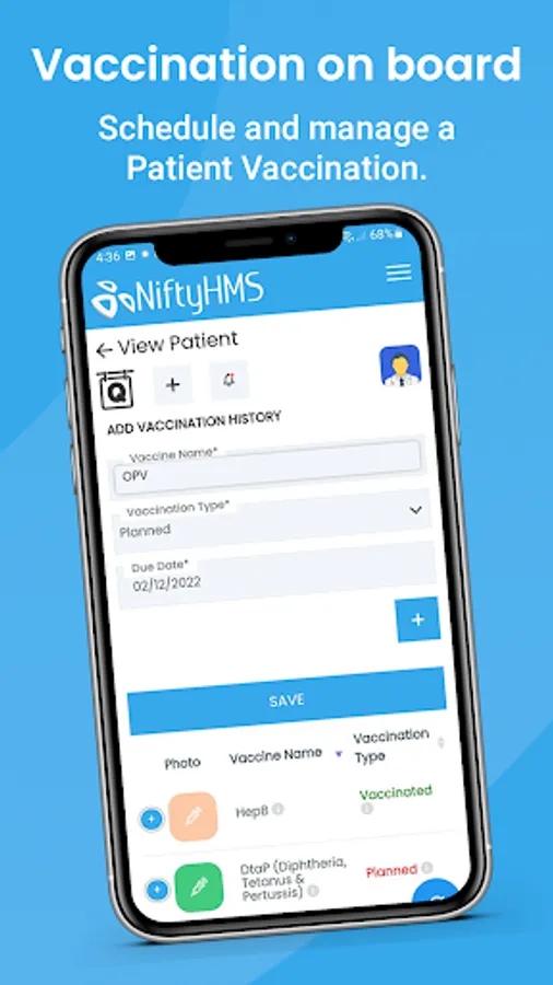ππ» Schedule and manage a patient vaccination based on eligibility. Patient can get reminder of next vaccination visit.