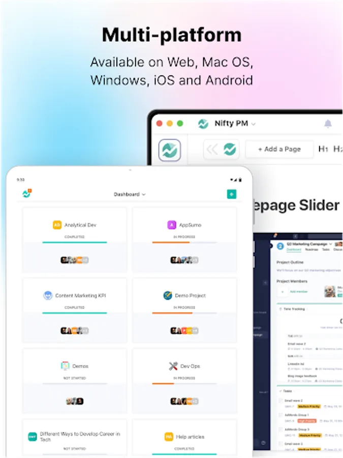 Nifty is the ultimate project management OS to manage teams, projects, tasks, and communications in one collaborative place.