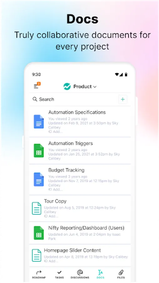 Docs – Nifty’s blank canvas; this clean, collaborative doc tool keeps business requirements, project notes, and creative copy where they should be—with your project.
