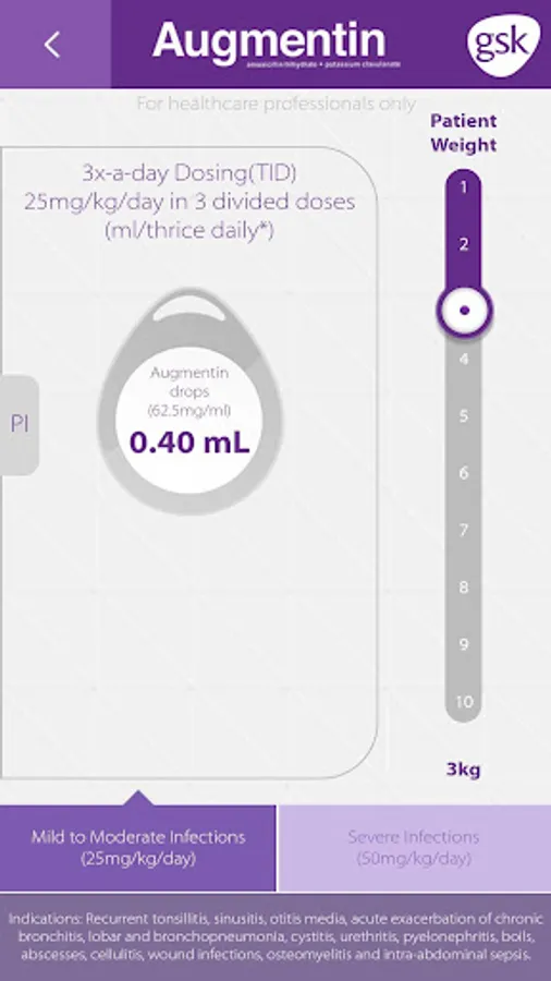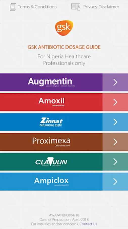 GSK Antibiotics Dosage Calculator intended for use by healthcare Professionals only in Nigeria.