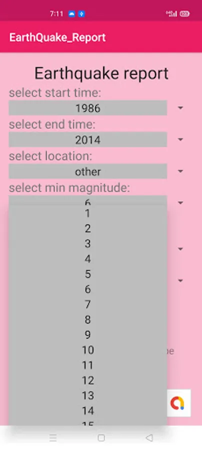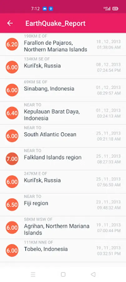 earthquake_report_app for displaying earthquakes that had happened in last 50 years