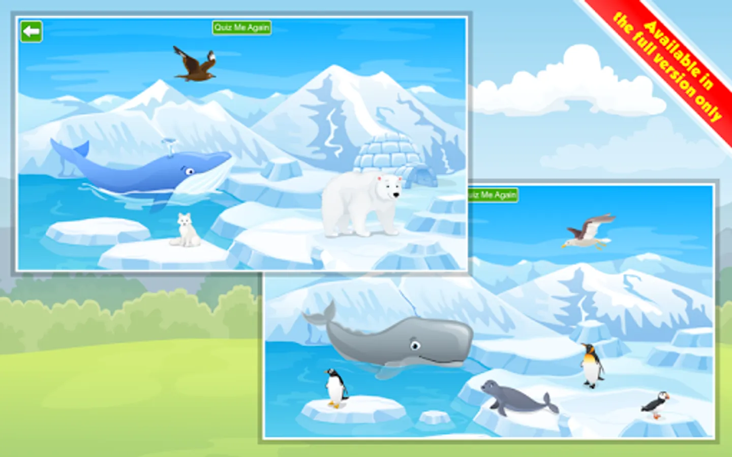 Kids Learn about Animals contains over 90 questions and educational descriptions for more than 70 animals. The game is divided into four different "zones": Farm and Domestic, Forest Wildlife, Africa Wildlife, as well as North and South Pole. It is intended for children ages 3 to 9.
