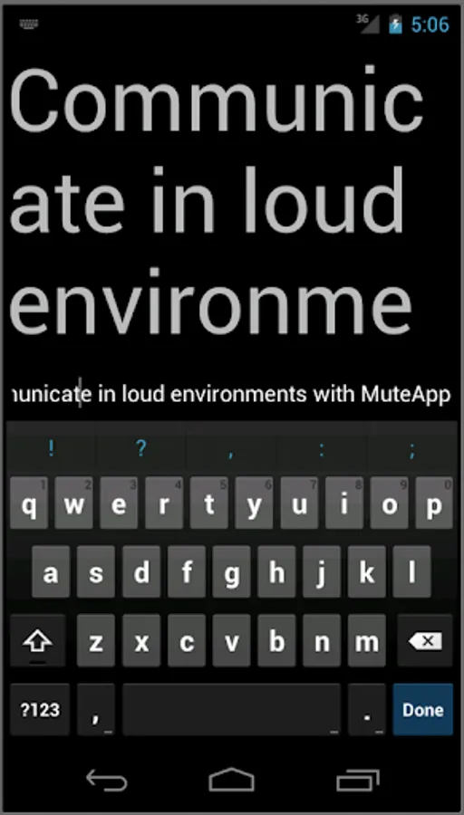 Communicate in loud environments with Mute App. Write any text and display it in easy-to-read, large font.