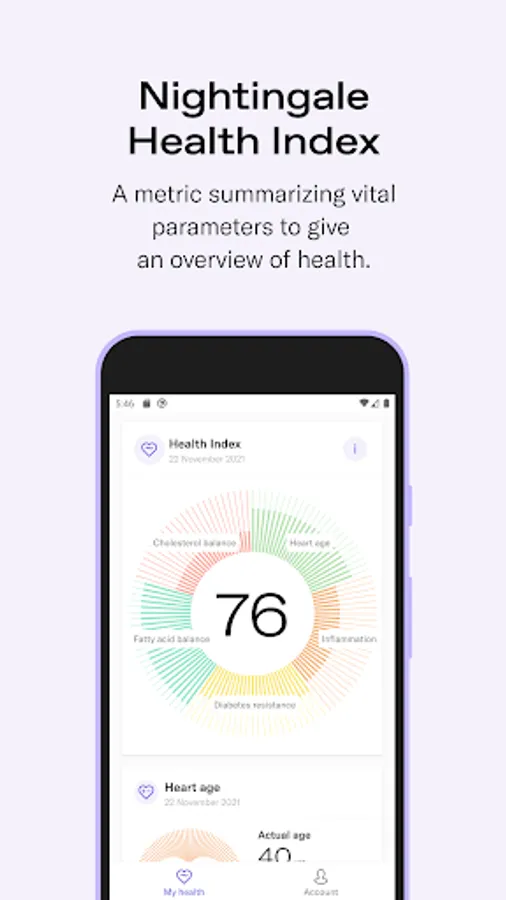 This is your health status in one score. Nightingale Health Index (NHI) is affected by your lifestyle, including diet, exercise, sleep and stress levels. Small changes in these routines can improve your NHI and help aim for lifelong health.