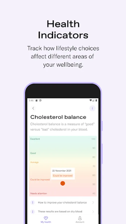 With My Nightingale blood test and app, track over 20 results to easily understand your current health, get research-based insights to improve different areas of your wellbeing and use the free follow-up test to see the progress you are making.