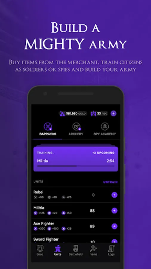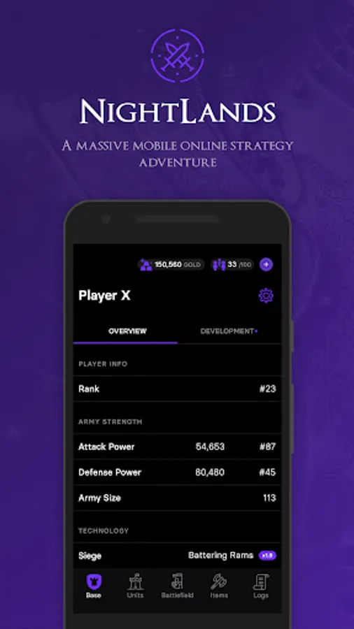 Nightlands is a massive mobile online strategy adventure. In the game, you take on the role of warlord as you build a mighty army by buying items, training soldiers, spying on your enemies and fighting fierce battles. Join the Night now!
