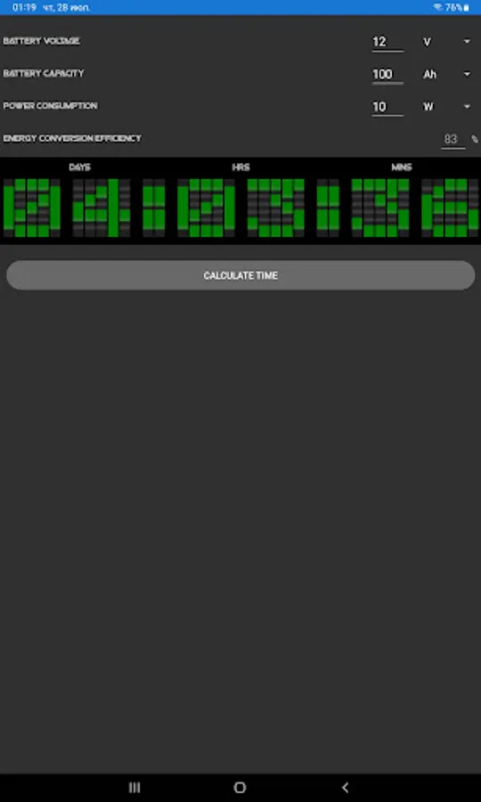 The formula is close to reality and includes such additional variables as: Inverter or UPS efficiency, coefficient of battery discharge depth, available capacitance ratio.