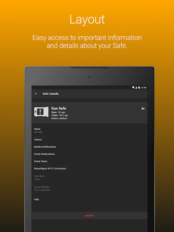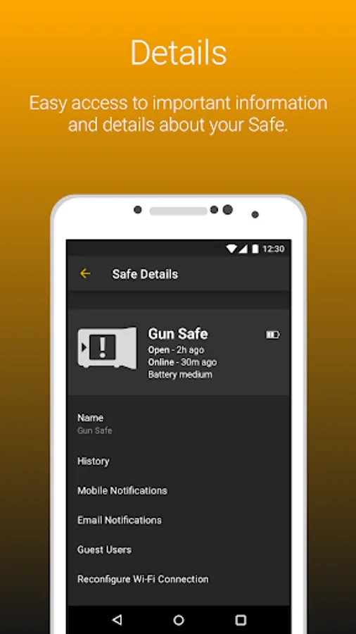 • Anytime the Safe loses its Wi-Fi connection, the app will alert you