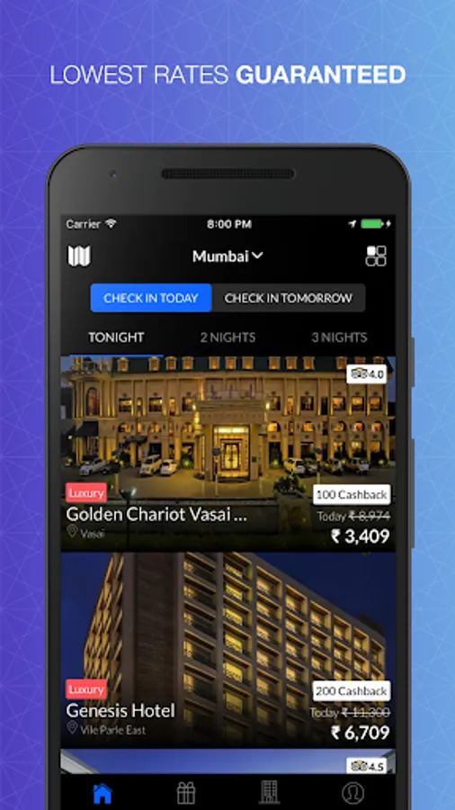 Forget booking a hotel in advance on makemytrip or goibibo. Forget booking in cheap hotels like OYO Rooms, FabHotels. NightStay will always have a room for you, every day, every night! Hotels give us last-minute deals on their unsold rooms, with discounts up to 85%. We pass these deals to you. Our prices are cheapest than the best deals found on internet. Best hotel booking app.