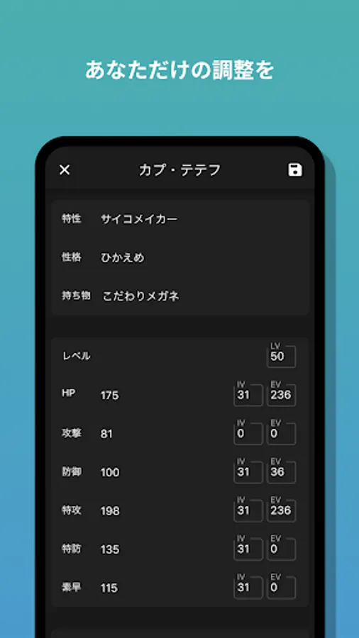 You can record parties and individual adjustments (individual value, effort value, personality, belongings, etc.).