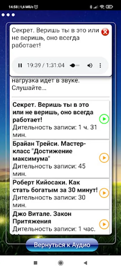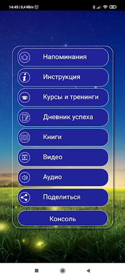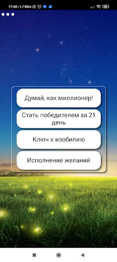 You can fulfill almost any of your wishes! Just try it and you will plunge into the magical world of making your dreams come true! Desires for money, health, happiness are normal human desires. The application helps to concentrate your desires, focus on them, performing certain exercises.