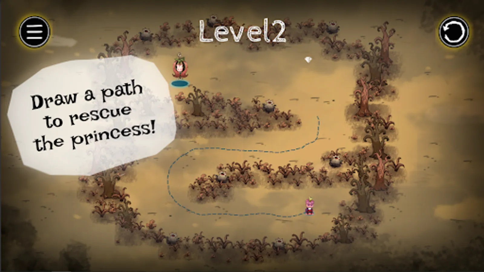 Draw a line to make a path for the heroes to travel and safe their captured princess, while avoiding obstacles and enemies along the way.