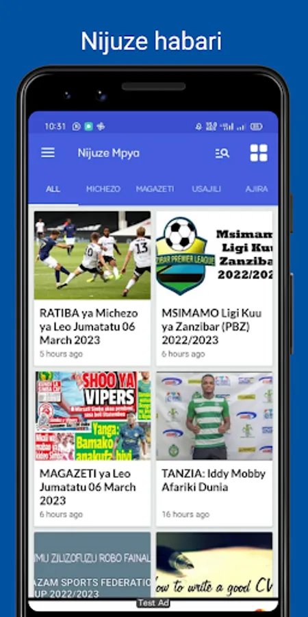 Nijuze Habari App inakuletea Kigangani Mwako Nafasi za Kazi kila siku, Makala Mbali mbali za ndani na nje ya Tanzania Pamoja na Kutazama Ratiba na Matokeo ya Ligi zote Duniani, Matokeo ya EPL, Matokeo ya Bundesliga, Matokeo ya Seria A, Matokeo ya La Liga, Matokeo ya League 1, Matokeo ya NBC Premier League.