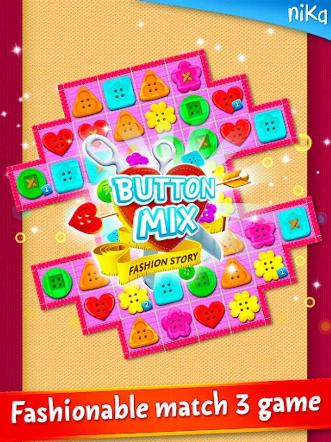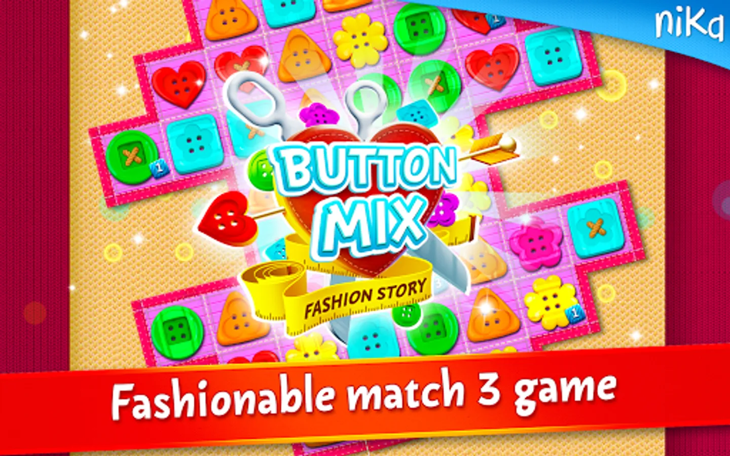 Welcome to Button Mix, the bright and catchy world of fashion, stylish outfits, and match-3 puzzles from Nika Entertainment and iLogos, developers of other candy puzzle adventures, such as Fairy Mix!