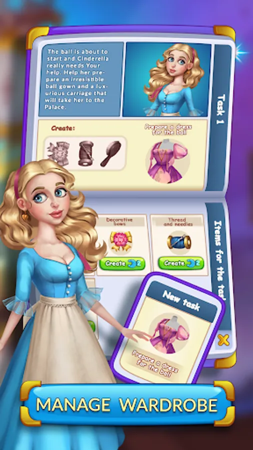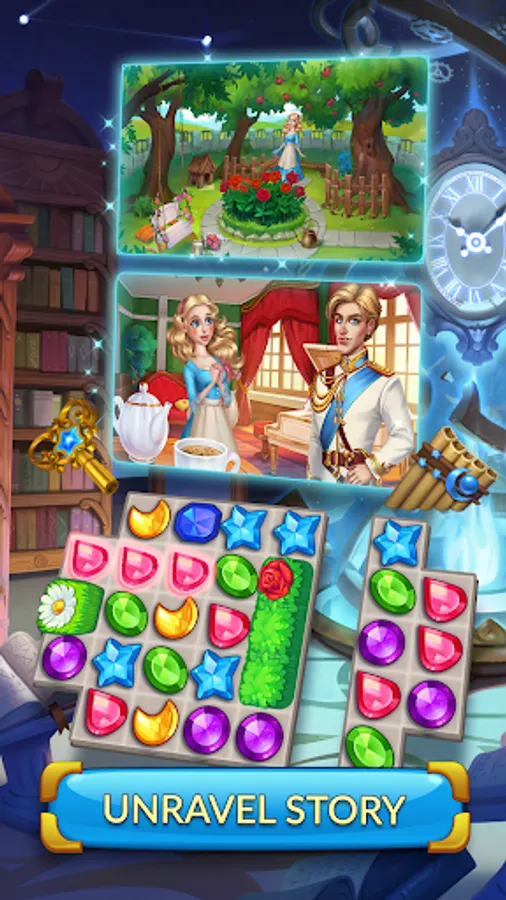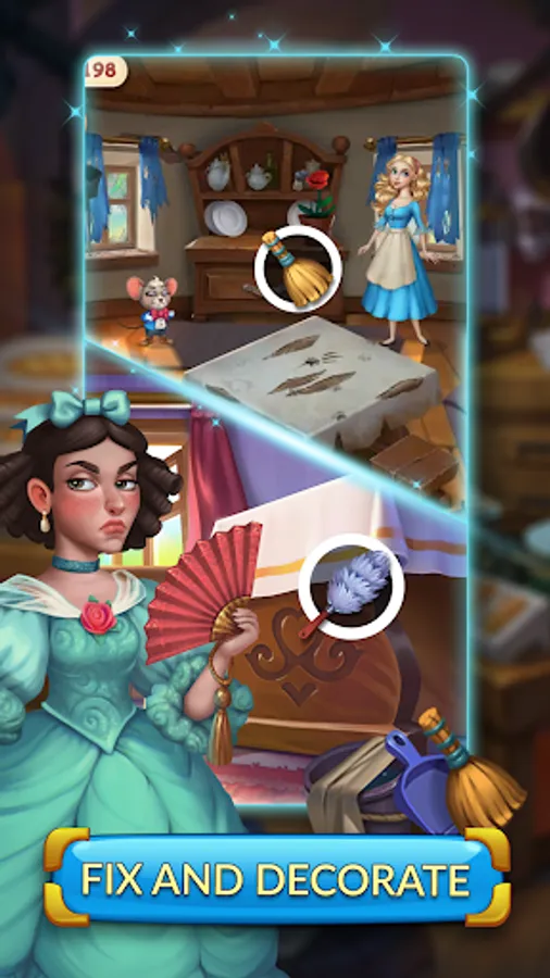 In this magical adventure, you will embark on a journey filled with "Match-3" quests, useful bonuses and power-ups. Solve puzzles by matching tiles, and with each successful level completed, earn valuable “Moon Magic" - the essential for advancing through the captivating storyline. As you progress through the game, you'll unlock new rooms in Cinderella's house and upgrade them with stunning decorations and furnishings. But be careful – some rooms may require special tools to unlock and upgrade!