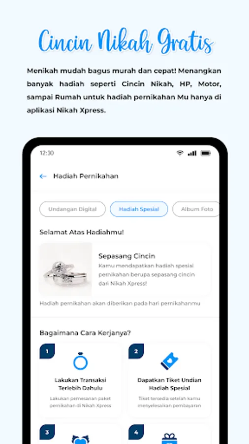 Abadikan moment terbaikmu bersama kami di Nikah Xpress! Menikah mudah bagus murah dan cepat! Menangkan banyak hadiah seperti cincin nikah, hp, motor, sampai rumah untuk hadiah pernikahan Mu hanya di aplikasi Nikah Xpress.