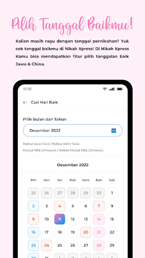 Kalian masih ragu dengan tanggal pernikahan? Yuk cek tanggal baikmu di Nikah Xpress! Di Nikah Xpress Kamu bisa mendapatkan fitur pilih tanggalan baik Jawa & China.