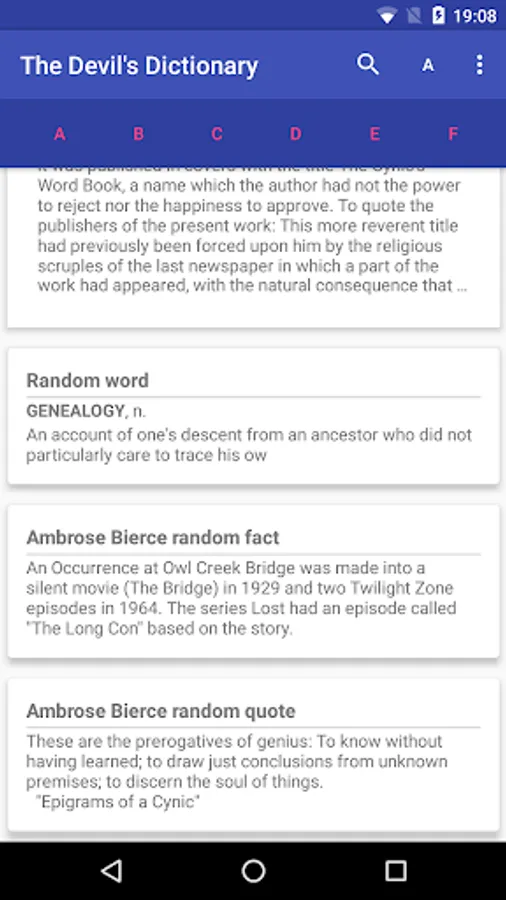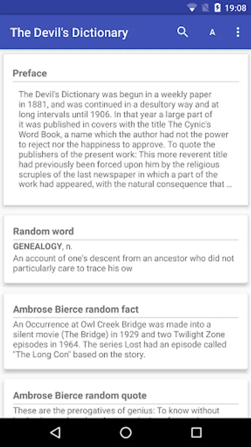 The Devil's Dictionary is a satirical dictionary written by American Civil War soldier, journalist, and short story writer Ambrose Bierce. Consisting of common words followed by "howlingly funny" definitions, the lexicon was written over three decades as a series of installments for magazines and newspapers. Bierce’s witty definitions were imitated and plagiarized for years before he gathered them into books, first as The Cynic's Word Book in 1906 and then in a more complete version as The Devil's Dictionary in 1911.